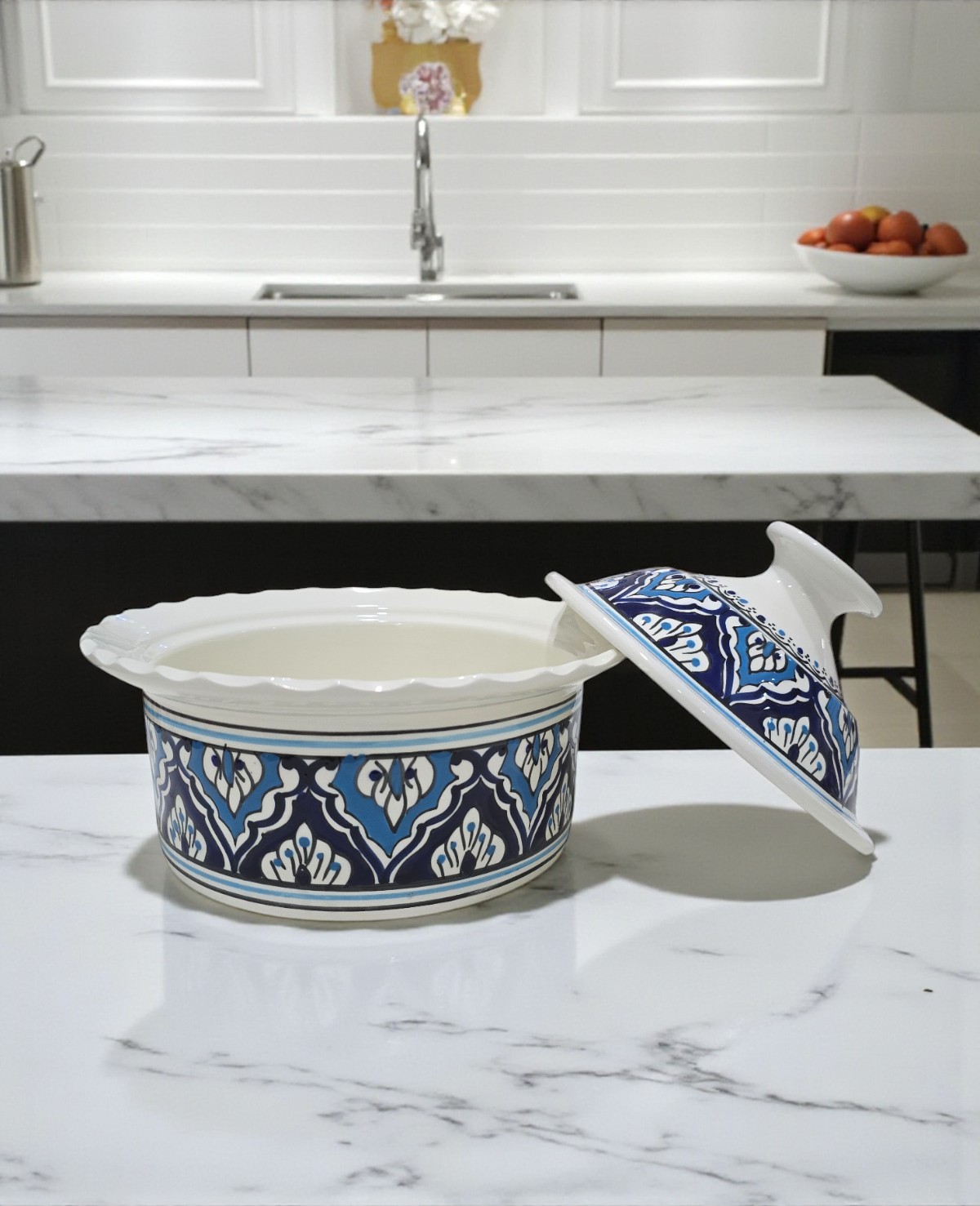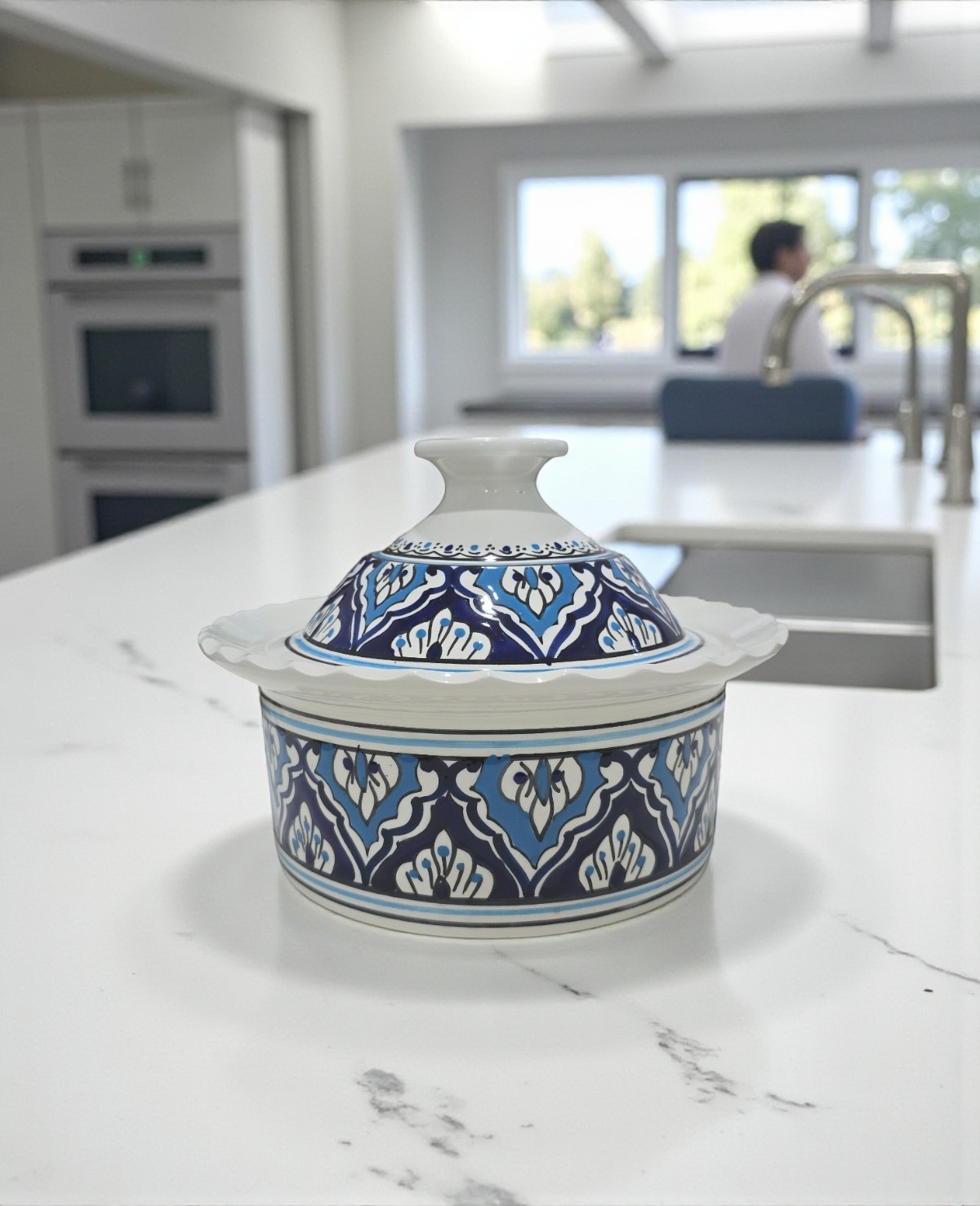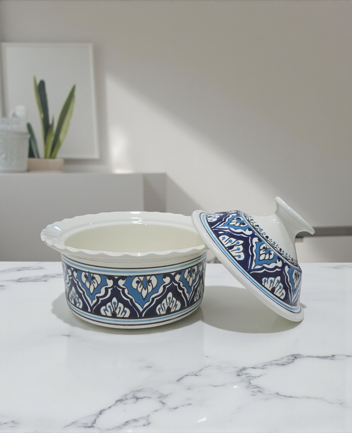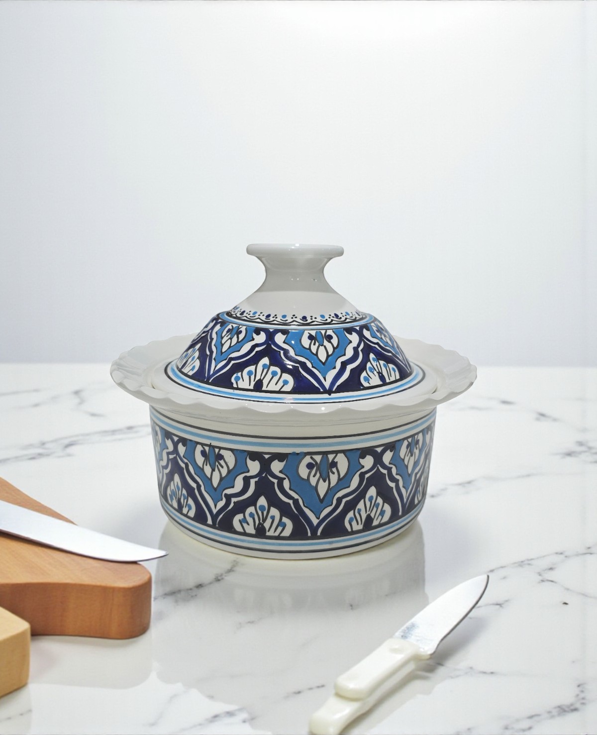 La Soupière Kerwena Azur est une création artisanale signée L’Artisan by Kerkeni, façonnée à la main selon le savoir-faire ancestral de Nabeul.