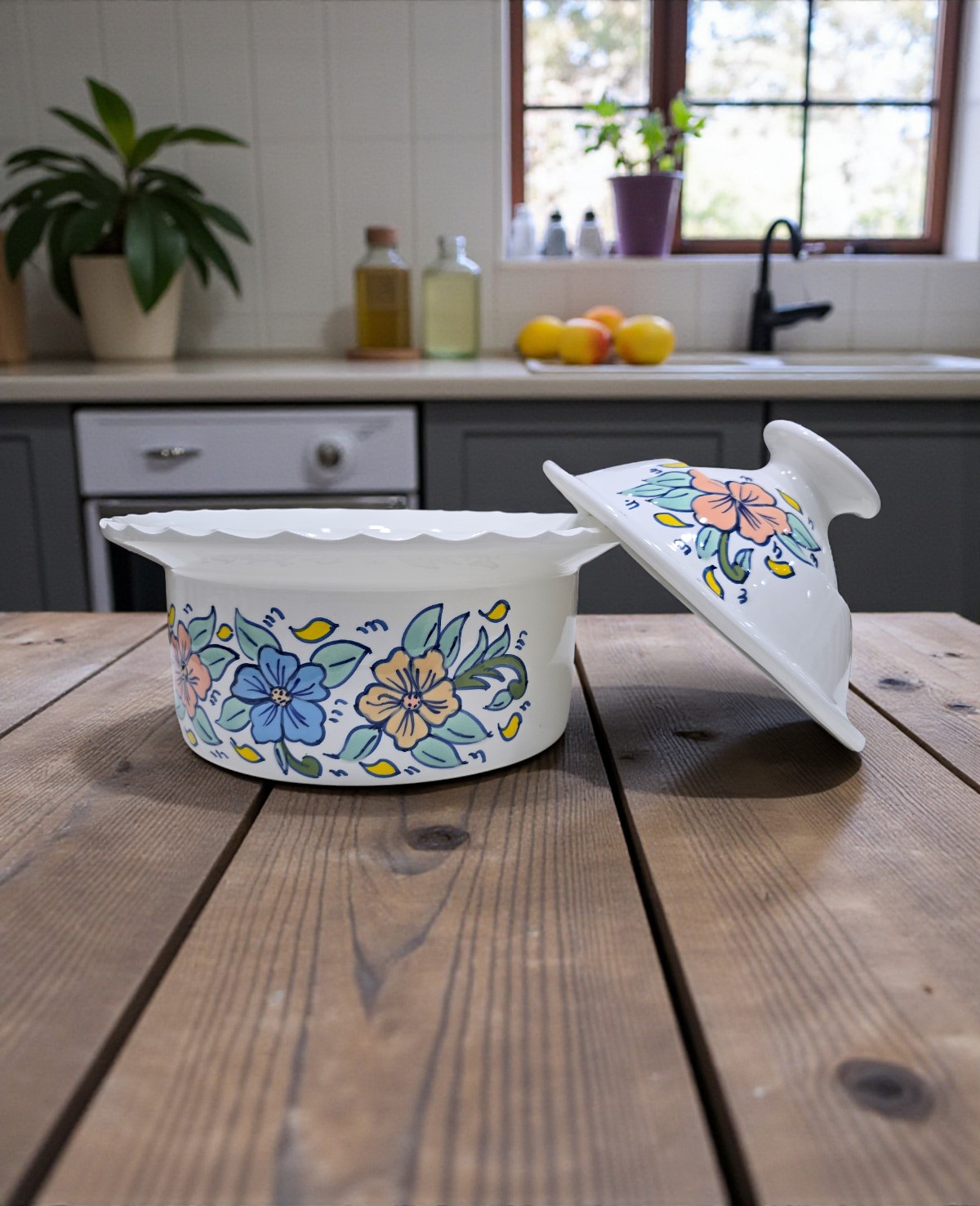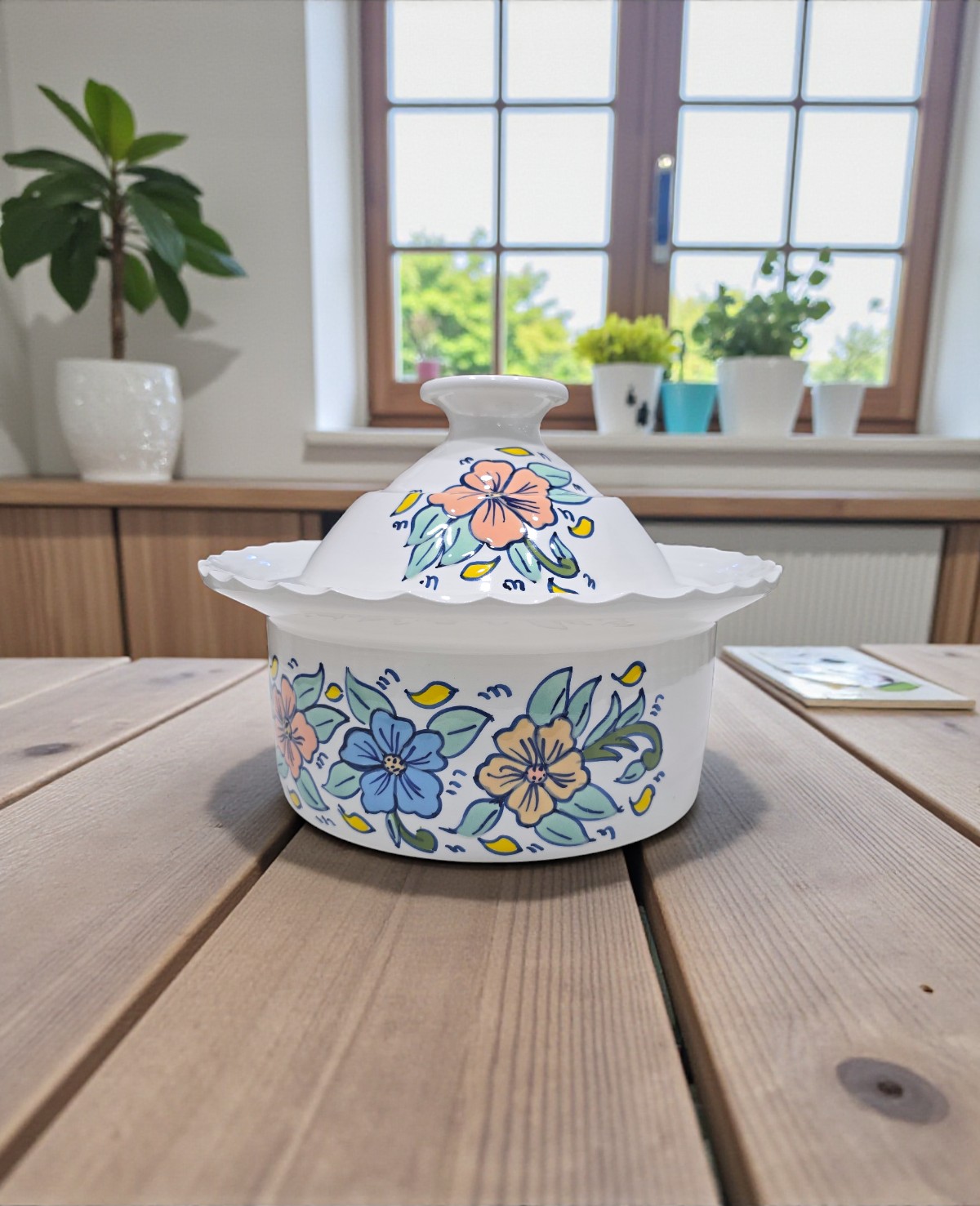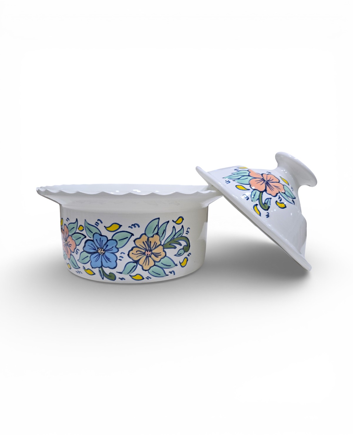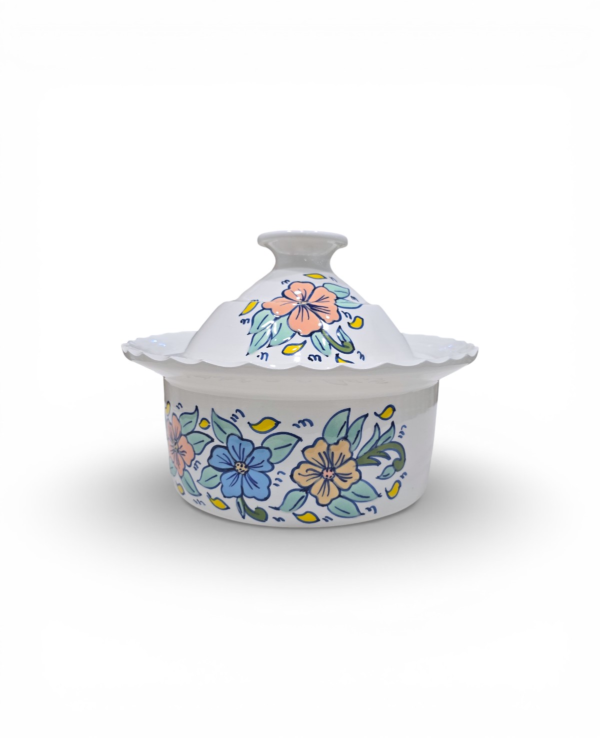 Entièrement façonnée et décorée à la main à Nabeul, la soupière Kerwena Flowers Pastel incarne un savoir-faire artisanal transmis de génération en génération. Sa forme traditionnelle permet de conserver la chaleur des préparations tout en facilitant le service. Chaque pièce est unique, avec de légères variations qui font le charme de l’artisanat authentique. Les motifs floraux pastel apportent fraîcheur et élégance, s’intégrant parfaitement à une table familiale ou festive.